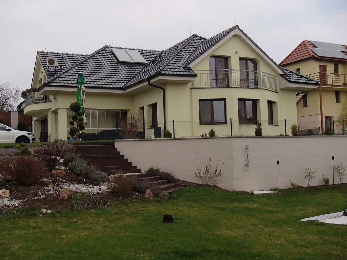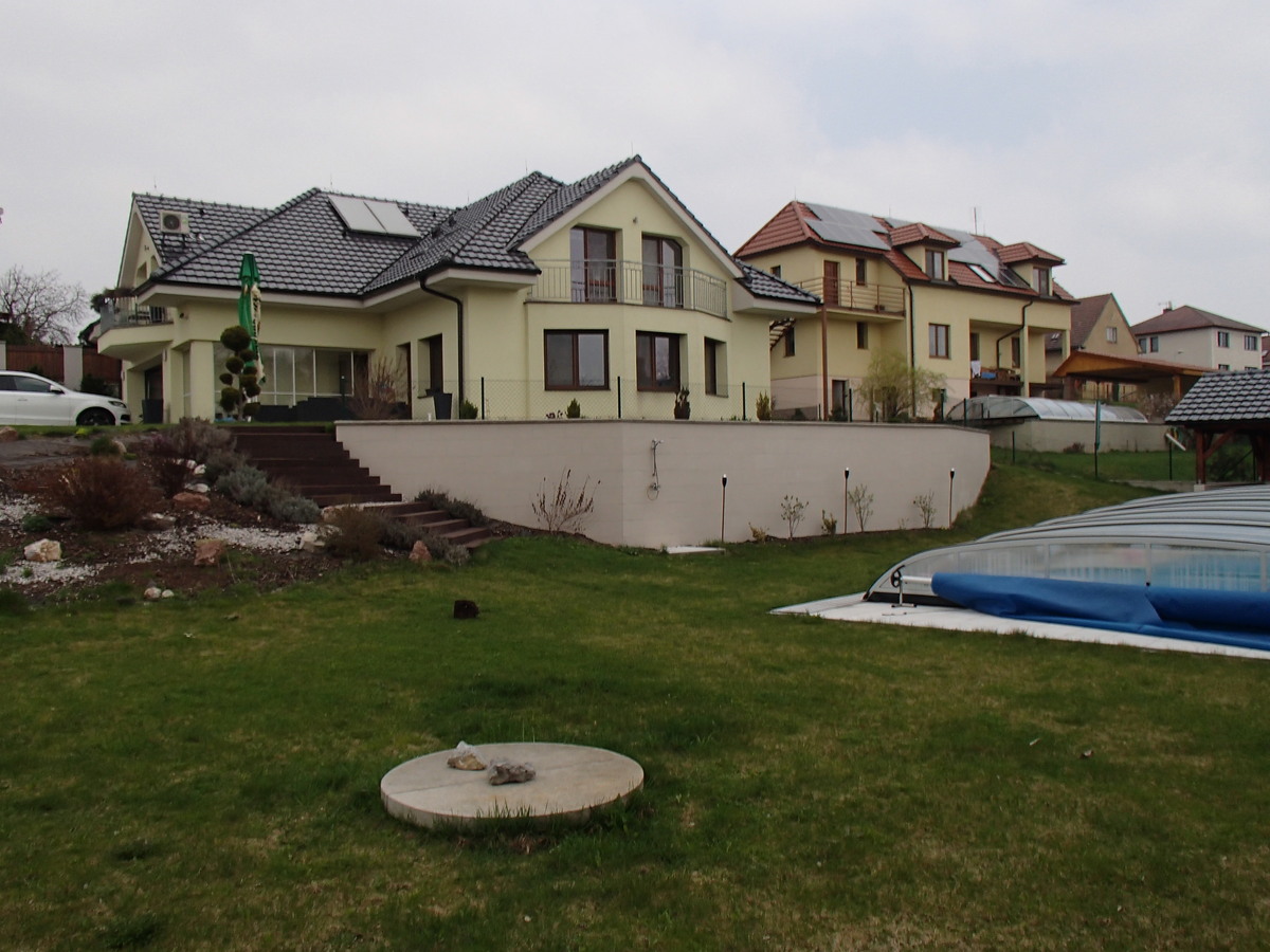 Stručný popis: Výstavba luxusního rodinného domu na lukrativní parcele včetně demolice stávajícího objektu a výstavby opěrných stěn pro vyrovnání pozemku a výstavby bazénu.